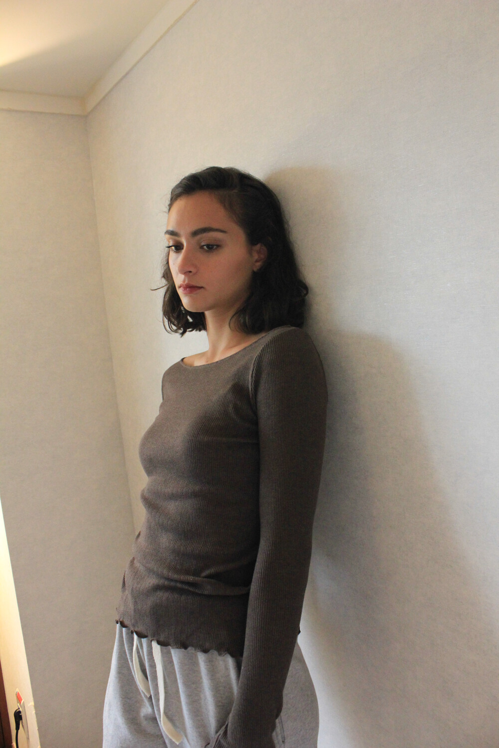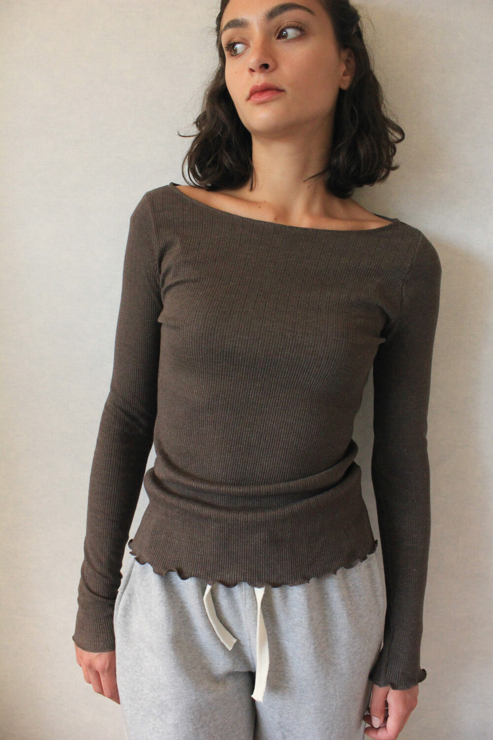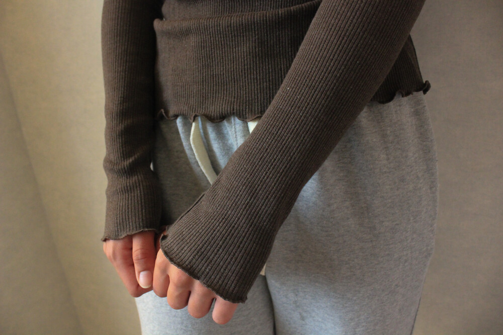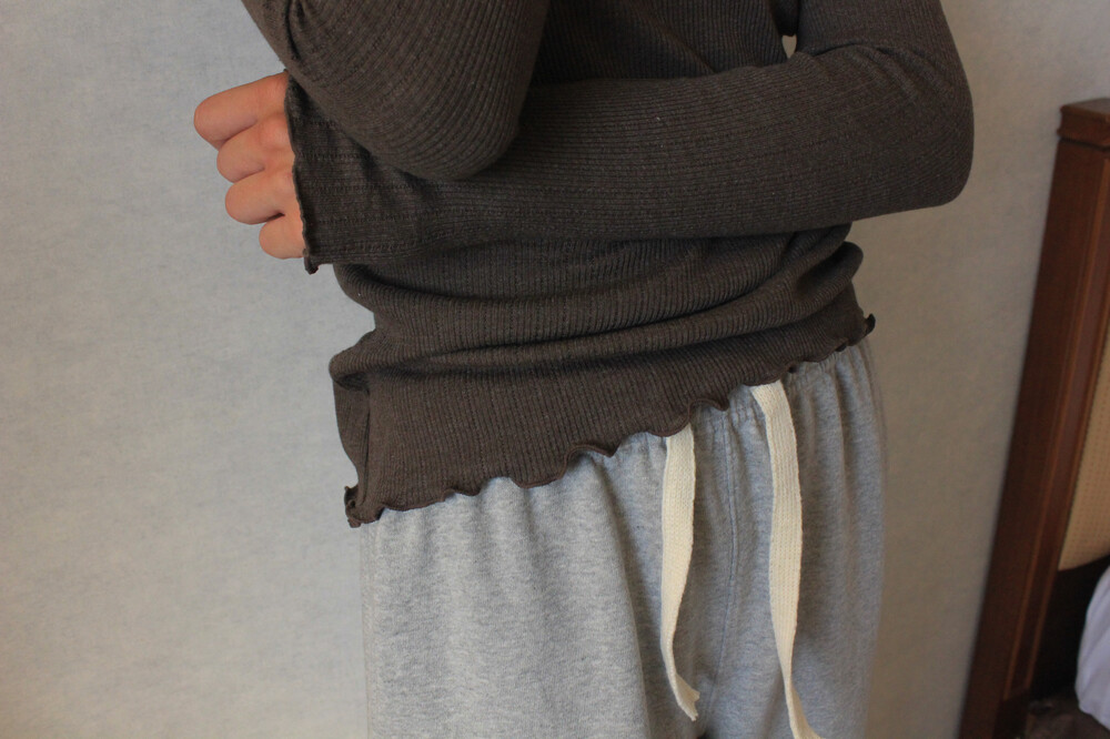 아일렛 디테일의 골지 소재로 단품 혹은 이너 모두 착용 가능한 아이템입니다.